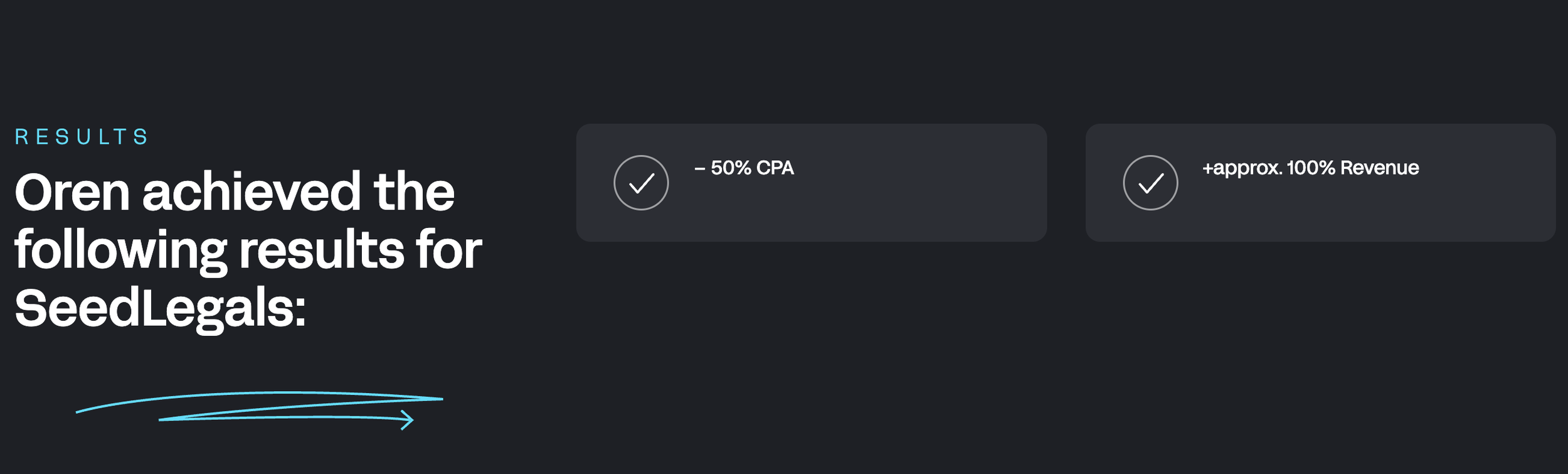 SeedLegals, a fast-growing UK legal tech startup, needed to accelerate customer acquisition without bloating internal resources. To do so, they partnered with a Fractional CMO from Oren, specialising in growth marketing.
