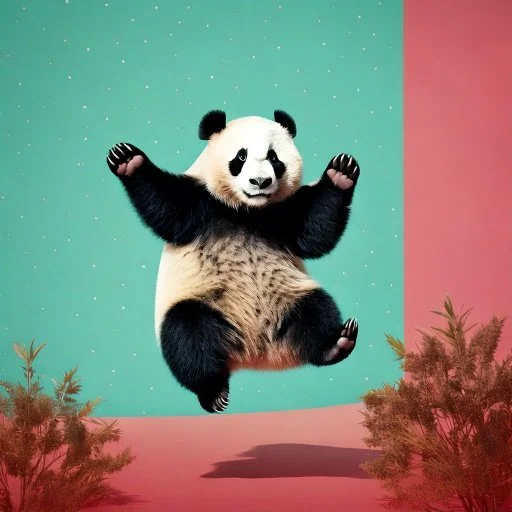 Abstract illustration of a panda composed of geometric shapes and pixelated textures, with vibrant pink and blue semicircles on the left side.